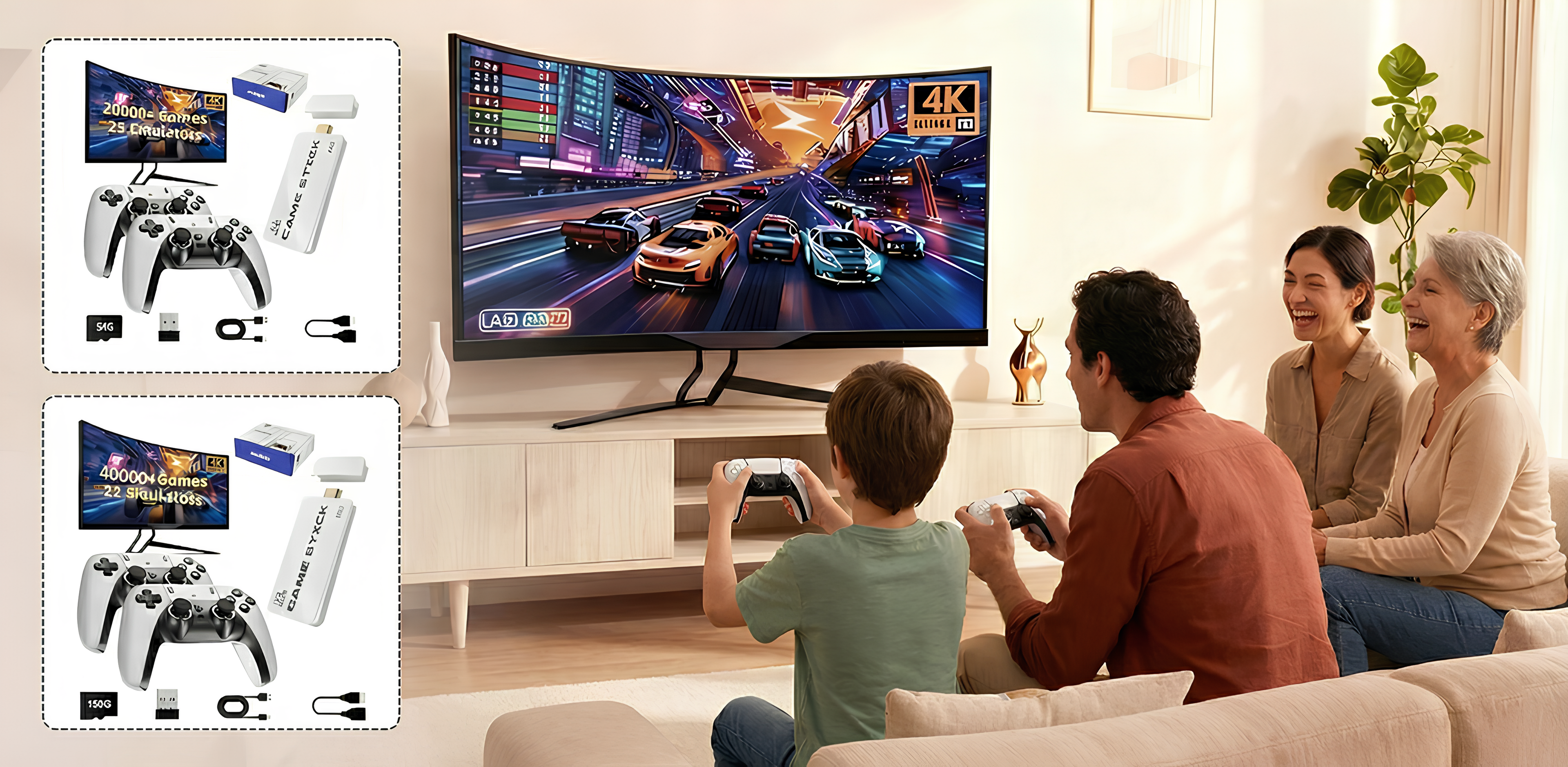 هذا الجهاز لا يقدّم ألعابًا فقط، بل يعيد روح اللعب الجماعي الحقيقي. يجمع العائلة والأصدقاء في نفس المكان، حيث الضحك، التحدّي، والمشاركة تصبح جزءًا من التجربة. بدون إنترنت، بدون تعقيد، فقط متعة بسيطة تخلق لحظات لا تُنسى داخل البيت.